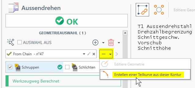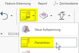 Weiters wird, in einem ersten Schritt, die Drehen-Funktion Plandrehen ausgeführt: