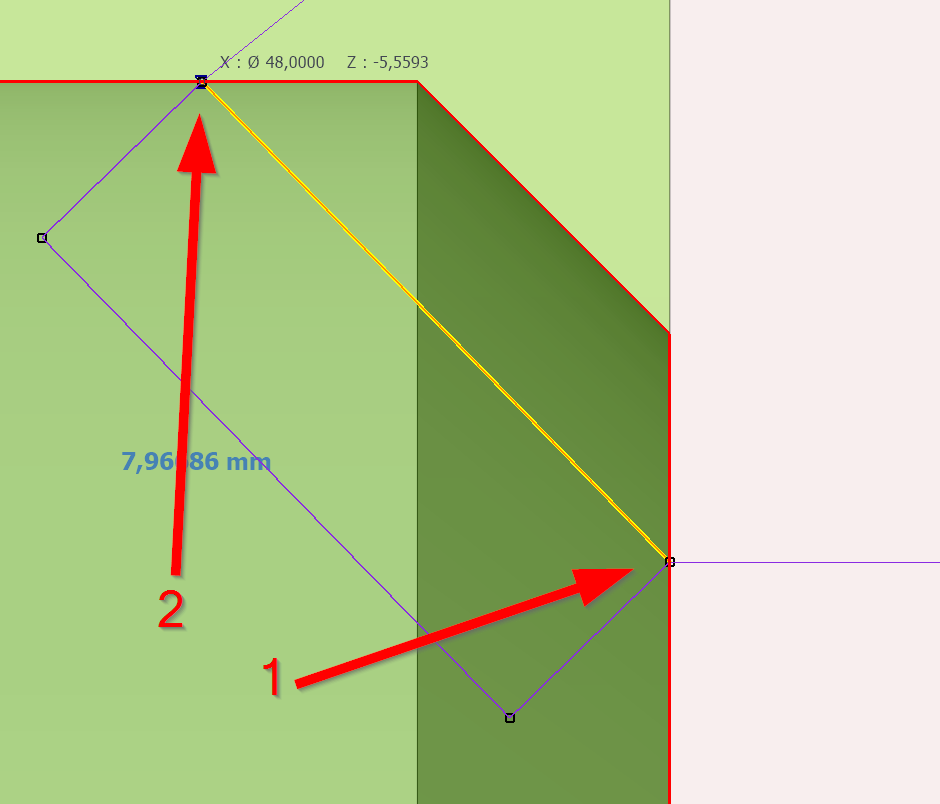 Falls Sei eine andere Funktion benutzten wollen (hier eine längere Fase) dann gehen Sie wie folgt vor (die schritte 1 und 2 wie vorherig):