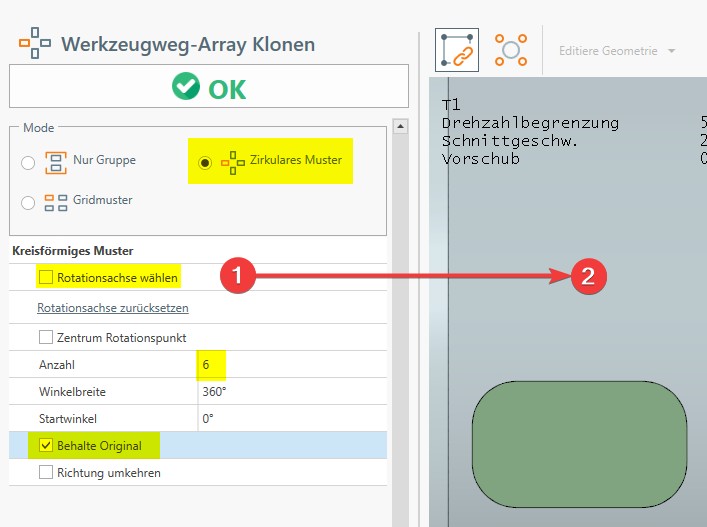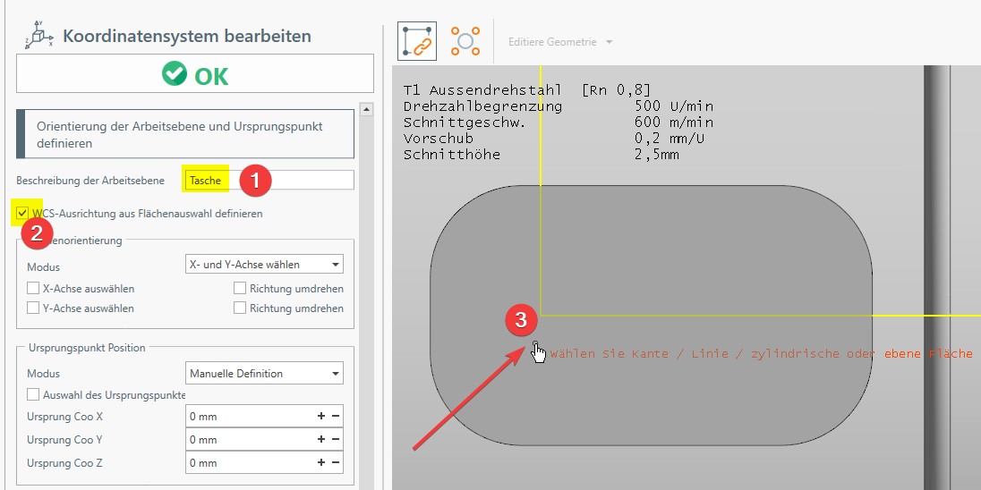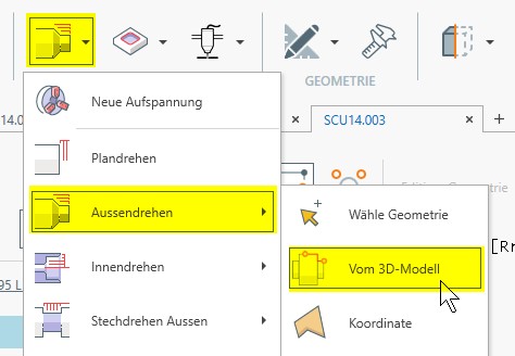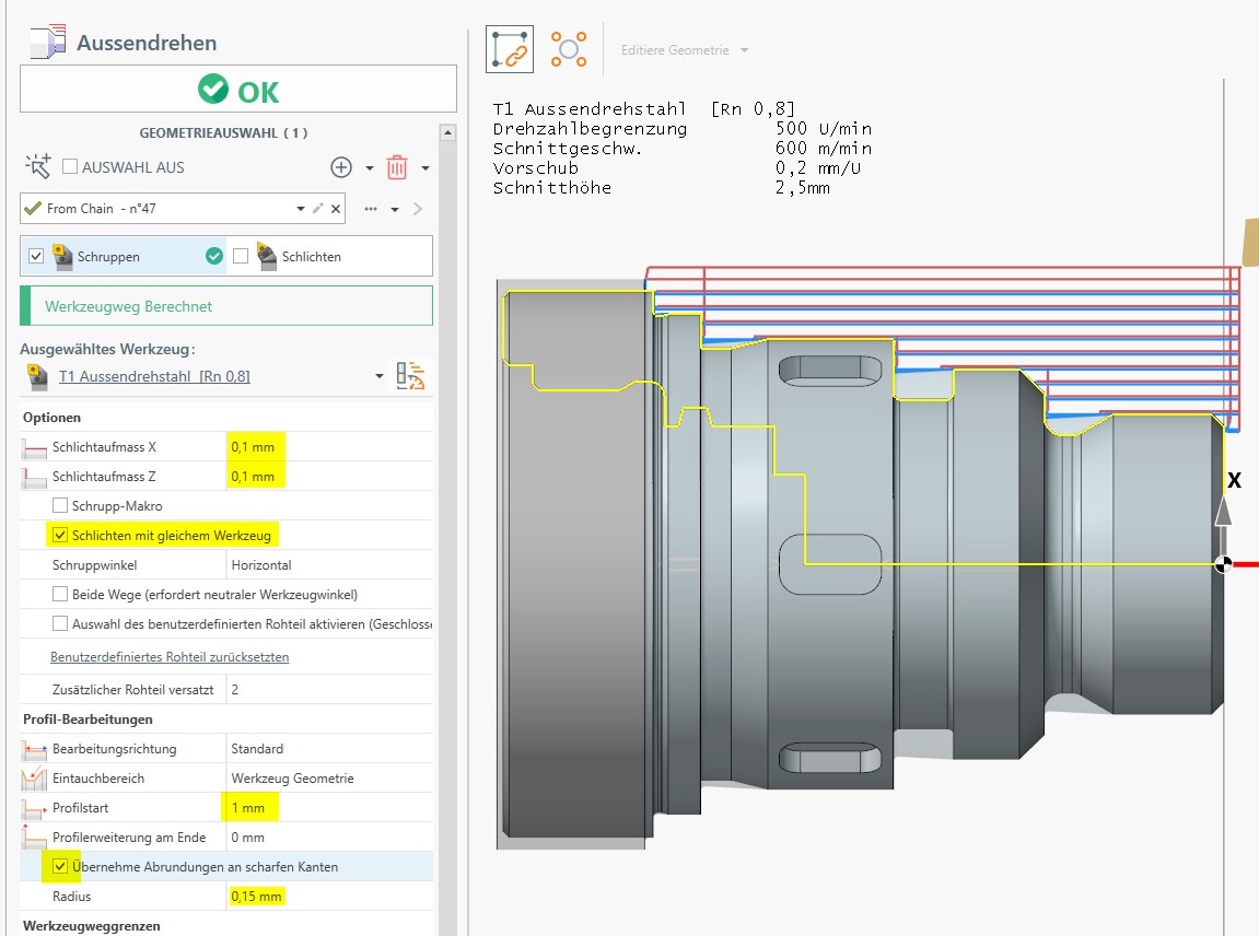 Weiters wird, in einem ersten Schritt, die Drehen-Funktion Plandrehen ausgeführt: