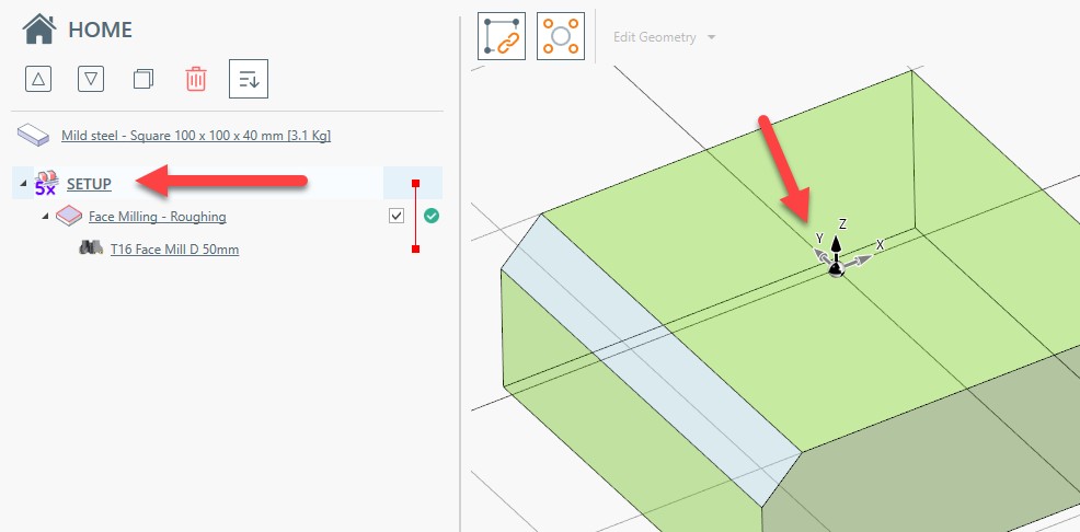 Wenn die CNC-Maschine INDEXED MACHINING unterstützt, ist es möglich, eine Werkzeugausrichtung für eine bestimmte Operation zu definieren, um in demselben Einrichtungszyklus auf mehreren Seiten zu arbeiten.