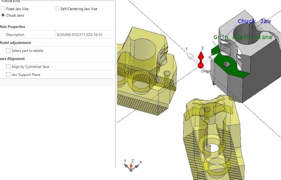 Anstatt ein 3D-Modell zu importieren, können die Spannbacken auch manuell mit einer Reihe von Parametern definiert werden.