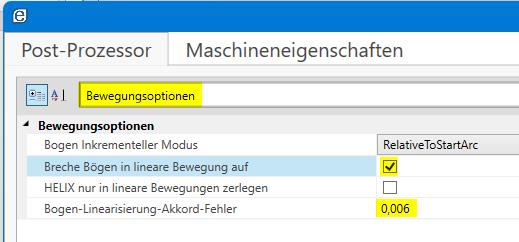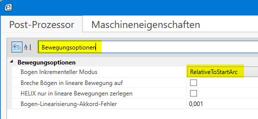 Um dies zu ändern, öffnen Sie den Postprozessor-Dialog und suchen Sie nach "Bewegungsoptionen",